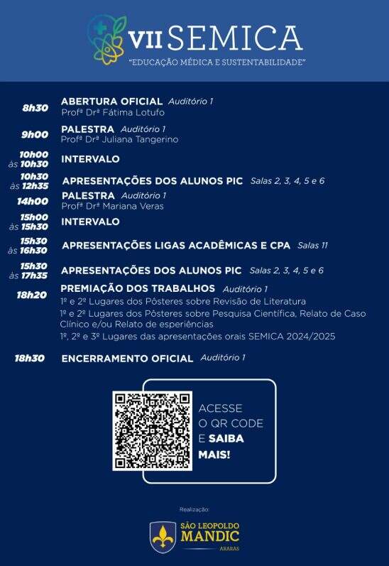 O VII SEMICA acontece no dia 22 de outubro de 2025 na Faculdade São Leopoldo Mandic Araras.